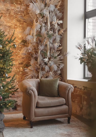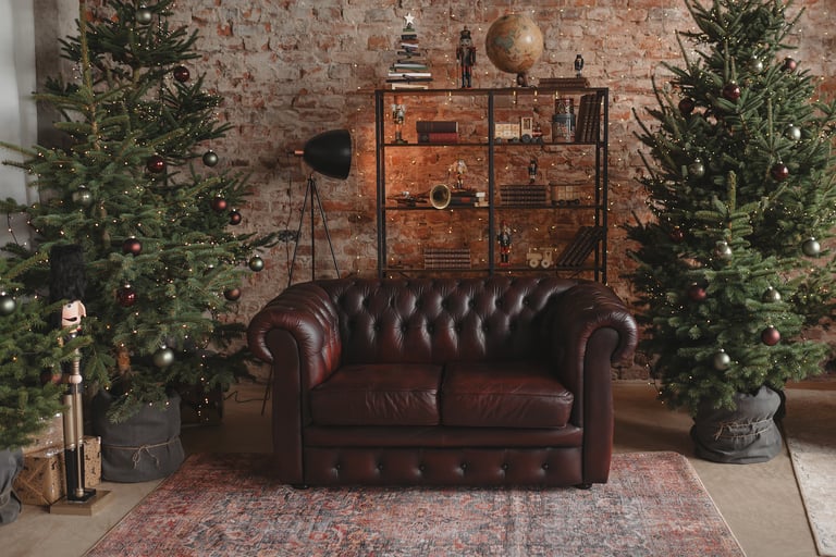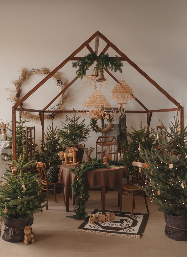 Studijoje Jūsų lauks šviesi, rustic stiliumi dekoruota, žemiška ir ryškesnė, plytų sienos modernesnė, gausiai apšviesta lemputėmis erdvės. Tikros, mišku kvepiančios eglutės.